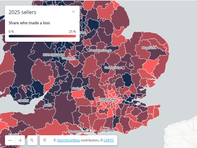 The City of London (26.2%), Kensington & Chelsea (22.4%), Westminster (22.1%) and Hammersmith & Fulham (20.8%) complete the top five local authorities where more than a fifth of sellers sold at a loss in 2025. Meanwhile, in Barking & Dagenham – London’s cheapest borough – just 5.3% of sellers sold below purchase price.